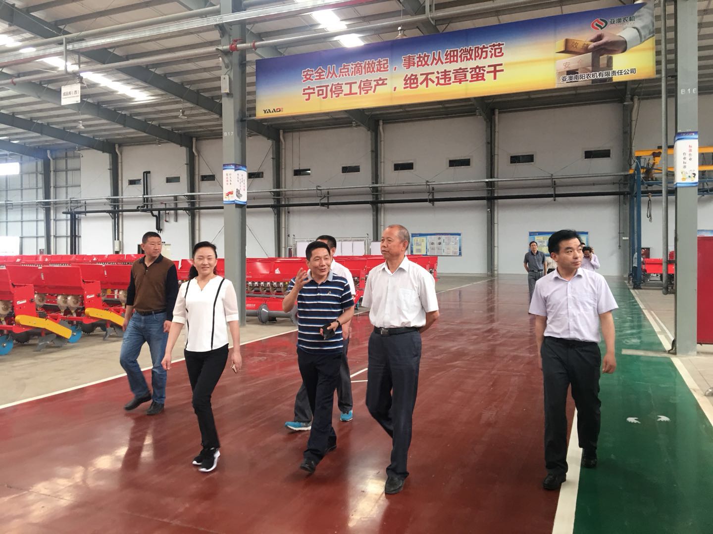 2018年5月29日上午,河南省農(nóng)機(jī)局副巡視員程雙進(jìn)在南陽(yáng)市農(nóng)機(jī)局劉勤局長(zhǎng)、縣農(nóng)機(jī)局、縣產(chǎn)業(yè)集聚區(qū)領(lǐng)導(dǎo)陪同下蒞臨亞澳視察亞澳農(nóng)機(jī)智能制造項(xiàng)目發(fā)展建設(shè)情況。