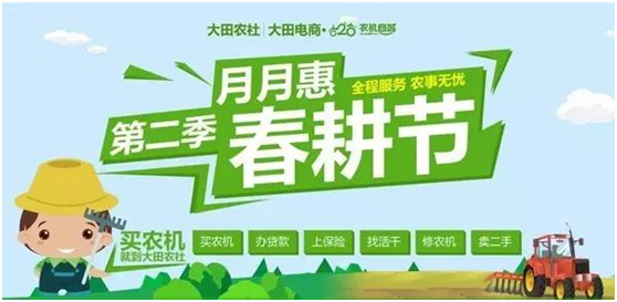 點(diǎn)評(píng):身為莊稼人,每年都會(huì)感覺(jué)機(jī)器不夠用,添置新機(jī)具也成為新年里的“必修課”。那么問(wèn)題來(lái)了,互聯(lián)網(wǎng)時(shí)代,還要一家家比價(jià)買(mǎi)農(nóng)機(jī)嗎?春耕節(jié)去哪兒買(mǎi)農(nóng)機(jī)更實(shí)惠?去哪兒查補(bǔ)貼?沒(méi)錢(qián)買(mǎi)農(nóng)機(jī)怎么辦?買(mǎi)了農(nóng)機(jī)沒(méi)活干怎么辦?如果你也有此困惑,快來(lái)大田農(nóng)社春耕節(jié)逛一逛。在這里,買(mǎi)農(nóng)機(jī)、辦貸款、上保險(xiǎn)、找活干、修農(nóng)機(jī)、賣二手統(tǒng)統(tǒng)可以有,讓你體驗(yàn)一個(gè)不一樣的春耕節(jié)。